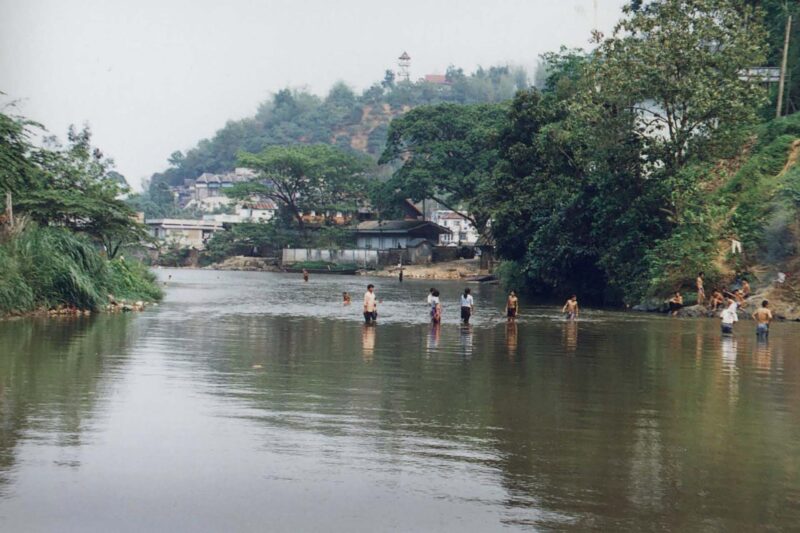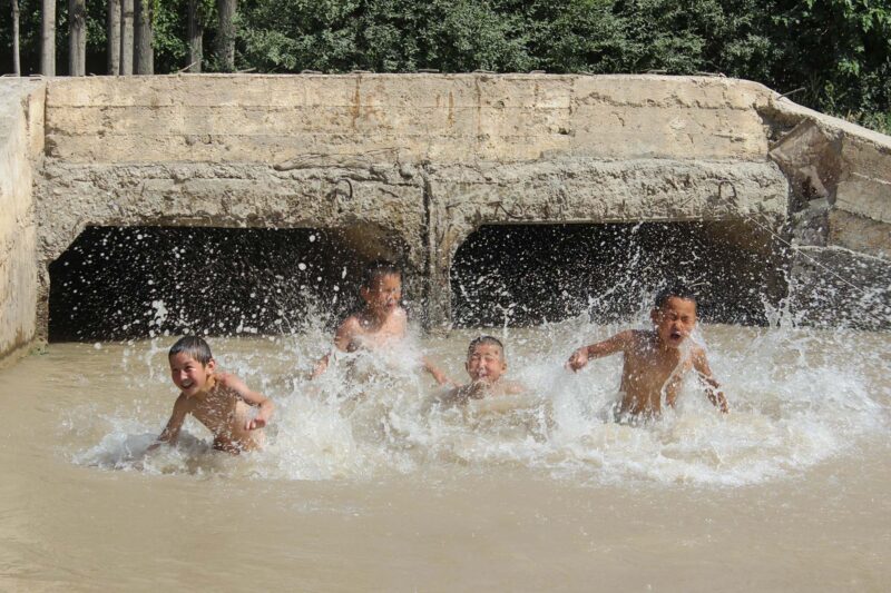 Despite infrastructural and political boundaries, everyday life on the border has its small joys. For instance, Karin Dean observed how locals beat the heat of the tropical climate in the shallow border river between Mae Sai, Thailand and Tachilek, Myanmar. Similarly, Asel Murzakulova photographed children in a village along the Kara-Darya River. For them, the transboundary canal does not embody the high politics of water management between states but is a source of delight and entertainment.