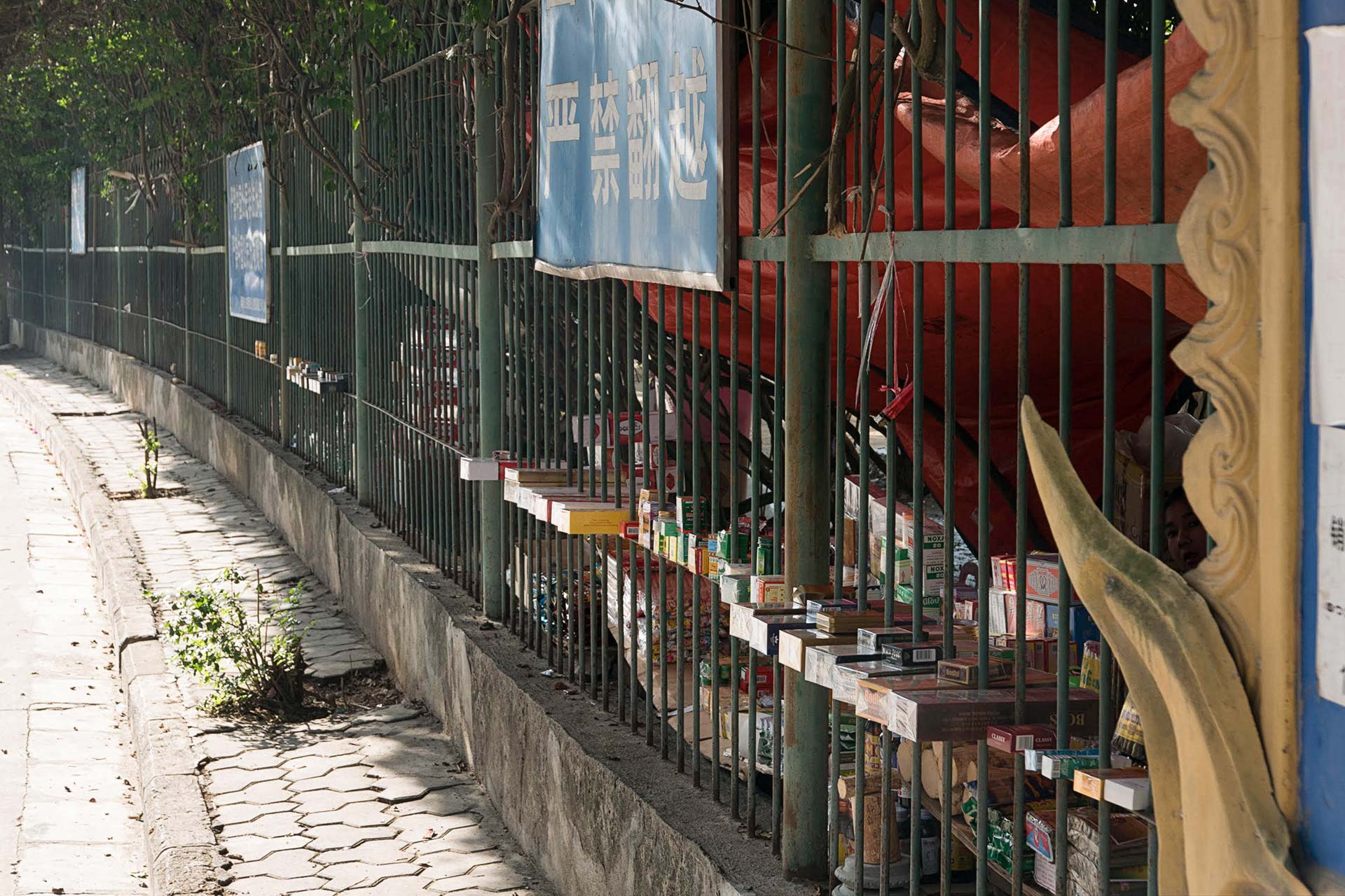 People often find creative and resourceful ways to navigate or exploit border infrastructure. In 2000, Karin Dean photographed a young woman crossing from China to Myanmar through a hole in a fence, showing that this is an everyday practice for locals. In 2015, Alessandra Rippa observed how the same fence was effectively used to trade cigarettes, exploiting the price difference between the two countries.