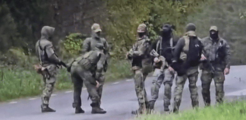 Armed Russian soldiers seen in and around Saatse Boot. Source: PPA
